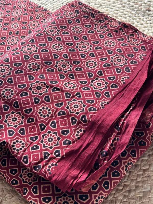 Discover the timeless elegance of our vintage bloom Ajrakh Cotton Mix & Match. This cotton fabric is soft & breathable. Wooden blocks carved with intricate details cover the entire length of a fabric, with beautiful and colorful Ajrakh prints all over. Pure cotton fabrics are known for their comfort and excellent breathability and softness.