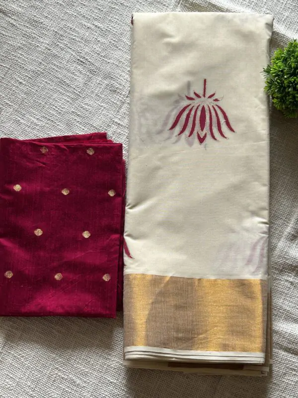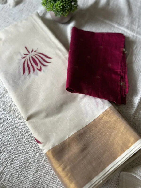 Embrace the poise and elegance of this Pink thamaraa (lotus) block has been perfectly captures the essence of feminine mystique, the contemporary motifs lends a modern charm to it.