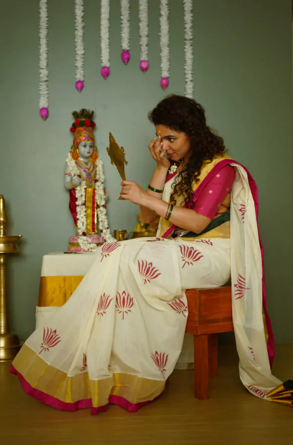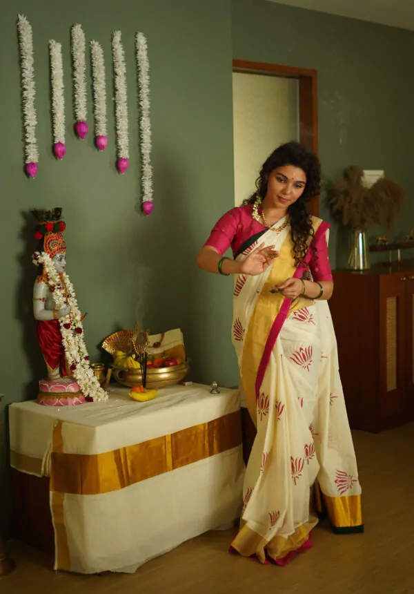 The word kurumbi means the one who is mischievous. Even though we age through time there will always be a little place in our hearts where we yearn to bring out the mischievous side in us, to be mischievous as a child. This Onam Vasah launches its handmade and block printed saree series, Kurumbi. A series solely for the child in you.