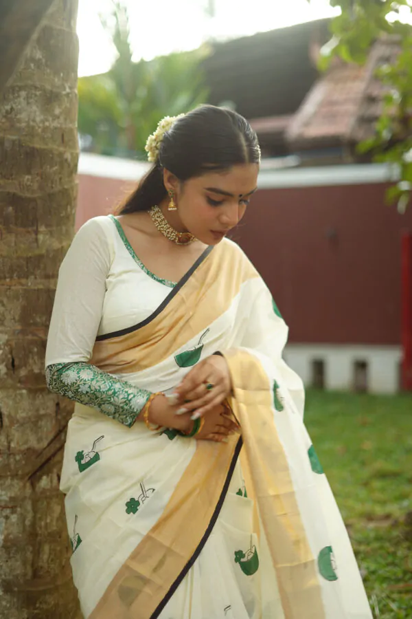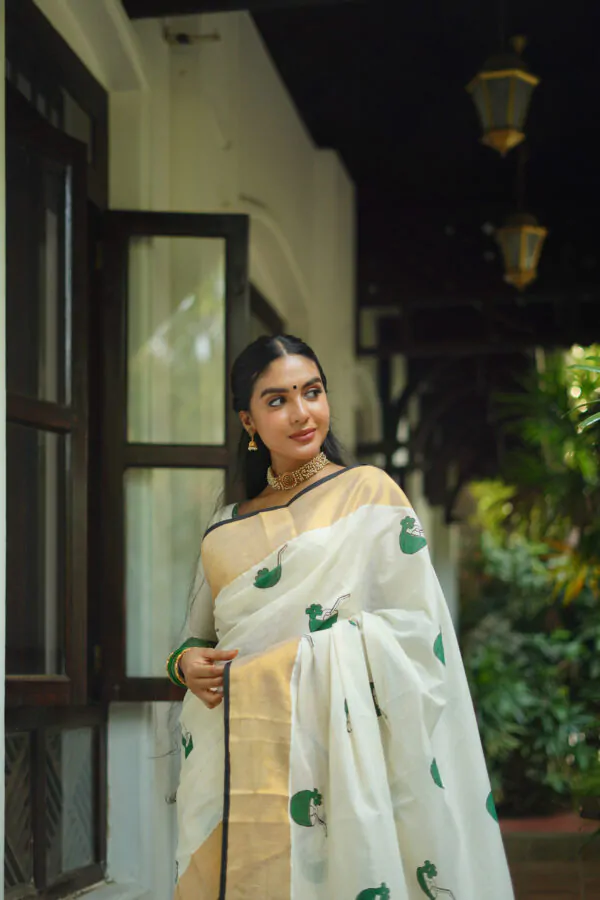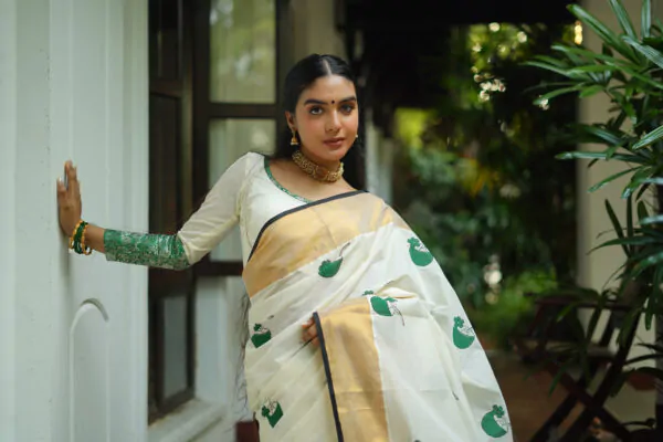 BLOUSE WILL BE 1 M UNSTICTHED BENARAS GREEN BLOUSE FABRIC.