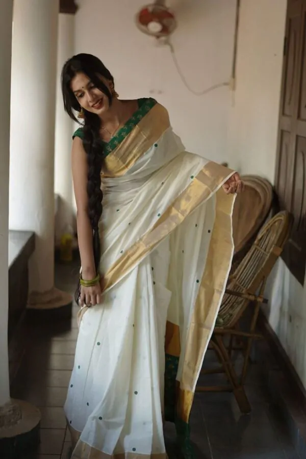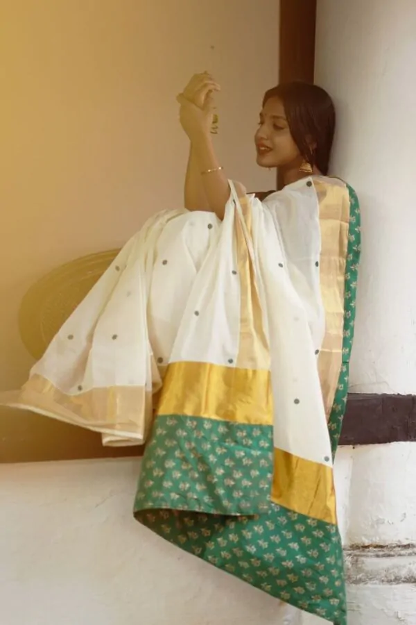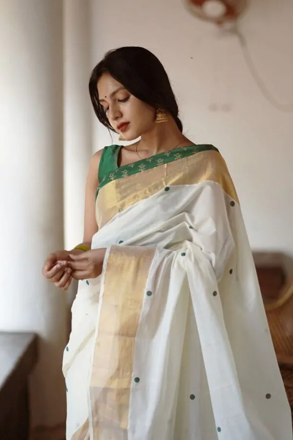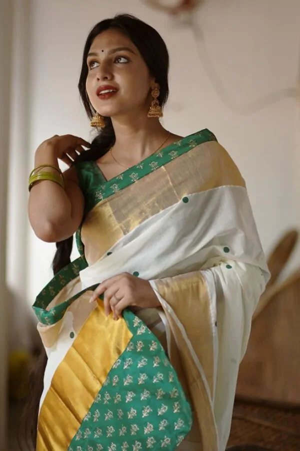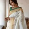 BLOUSE WILL BE 1 M UNSTICTHED SEMI RAW SILK FABRIC AS SAME AS THE BORDER.