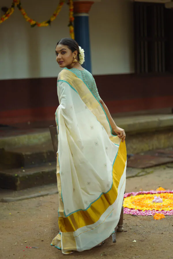 - BLOUSE WILL BE 1 M UNSTICTHED BANARAS BLOUSE FABRIC AS SAME AS THE BORDER.