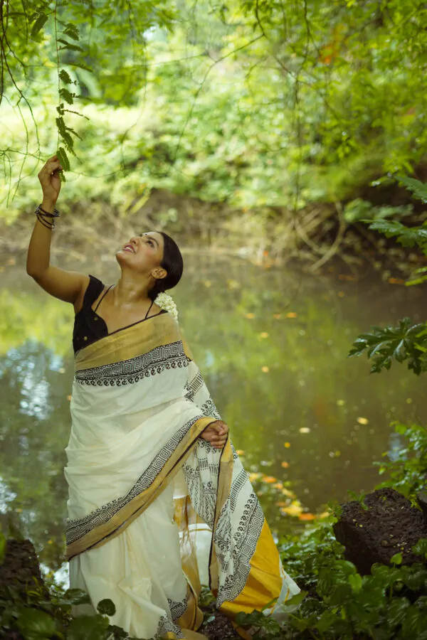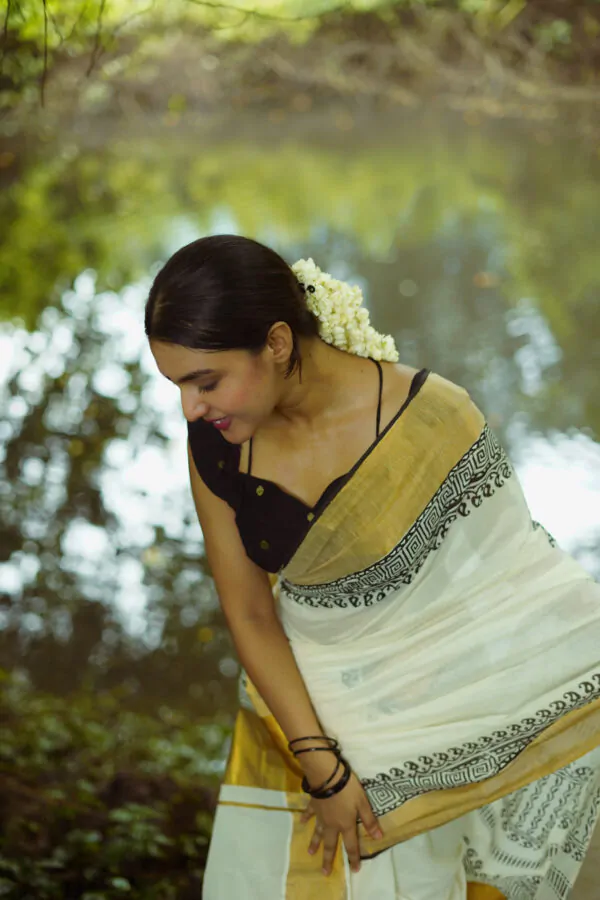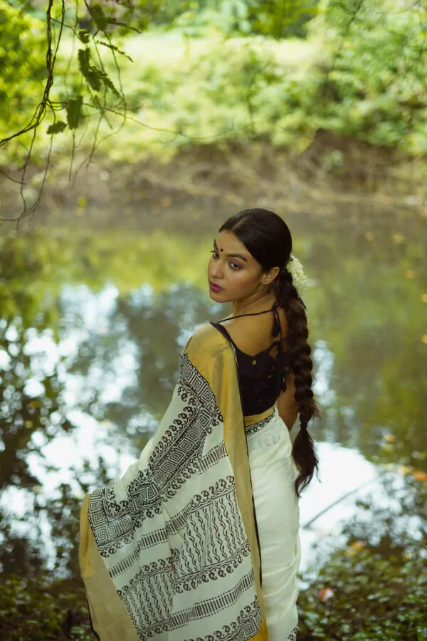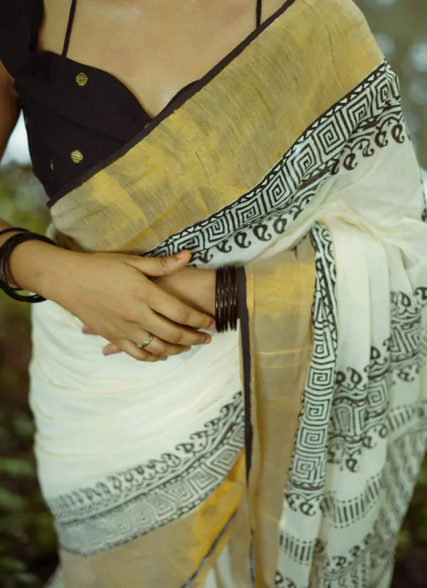 •  THE SAREE IS HAND BLOCK PRINTED.