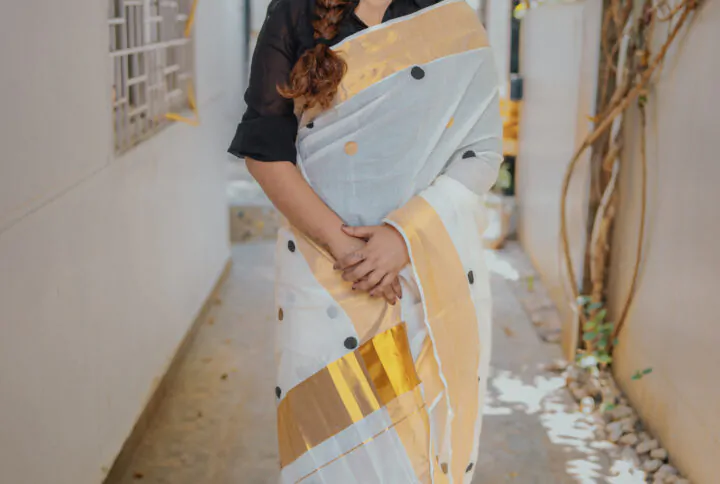 - THE SAREE IS HANDPAINTED