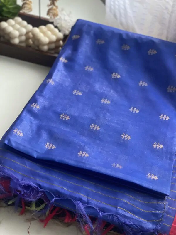Indulge in the luxurious feel of semi tussar muga silk as it drapes gracefully, creating a mesmerizing interplay of textures and hues. Our sarees are a celebration of the skilled artisans’ dedication, as they blend traditional weaving techniques with a touch of innovation.