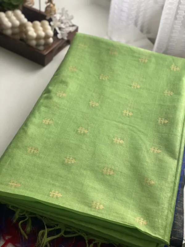 Indulge in the luxurious feel of semi tussar muga silk as it drapes gracefully, creating a mesmerizing interplay of textures and hues. Our sarees are a celebration of the skilled artisans’ dedication, as they blend traditional weaving techniques with a touch of innovation.